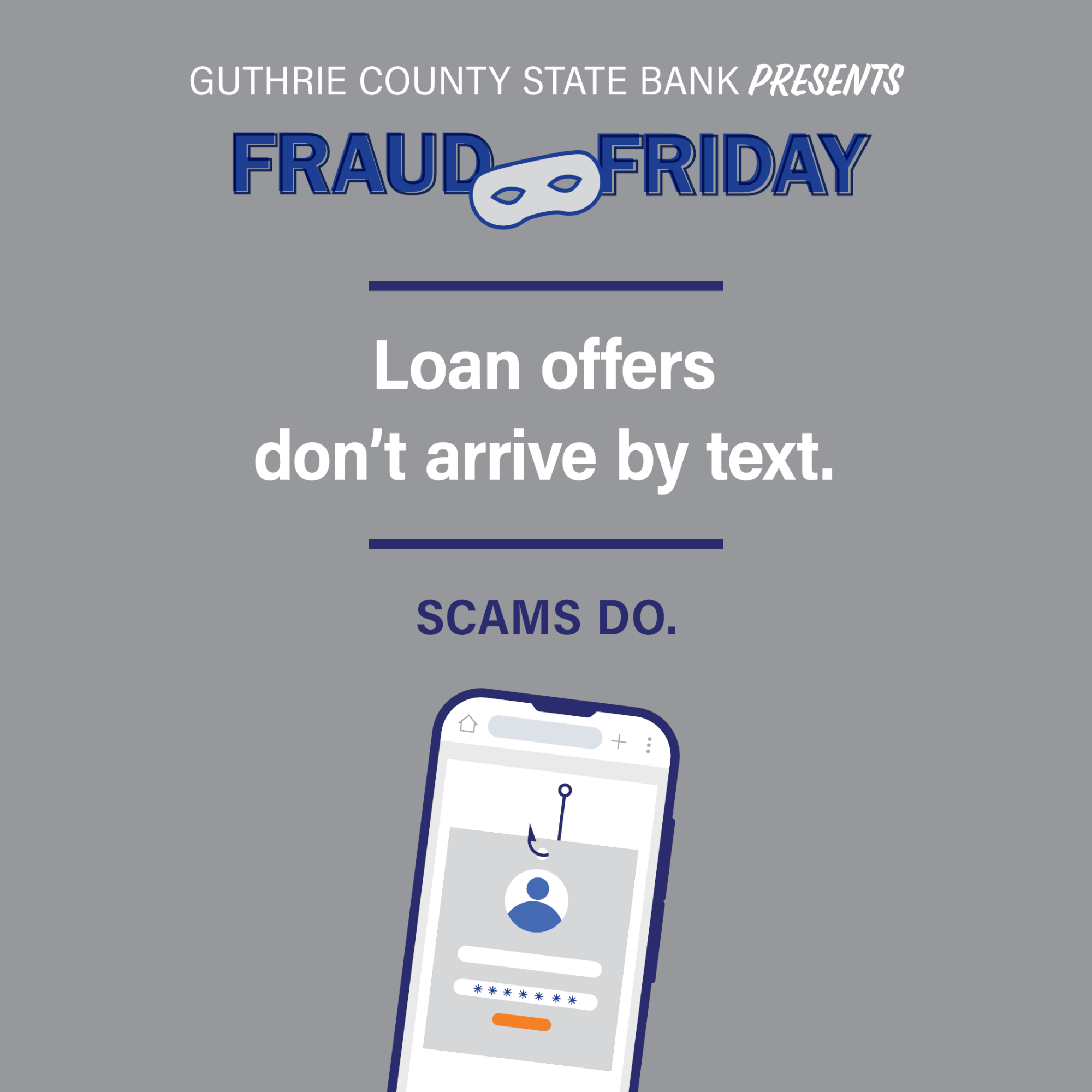 If you receive an unexpected loan text, don’t respond. Delete it, block the sender, and move on. And if you think you may have shared information in response to a suspicious message, contact GCSB right away so we can help you review your accounts and take next steps.